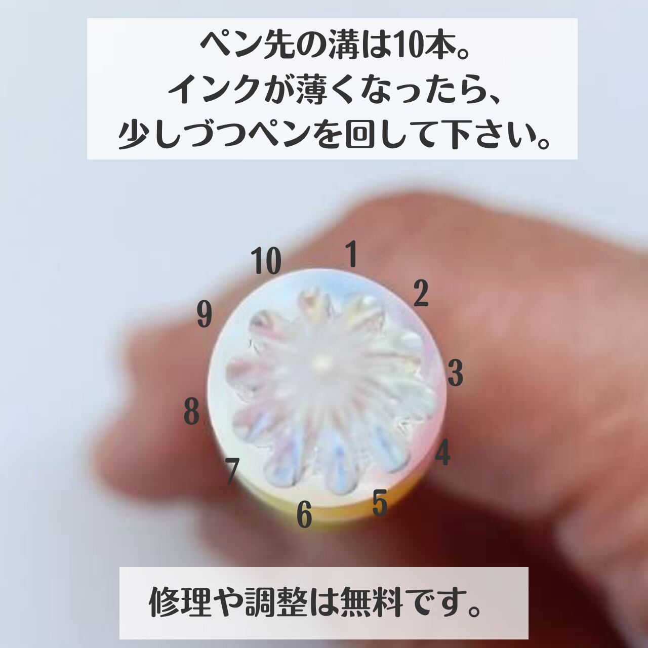 ラメインクも心地よく使えるようにペン先を調整した、ボロシリケイトガラスのペンです。