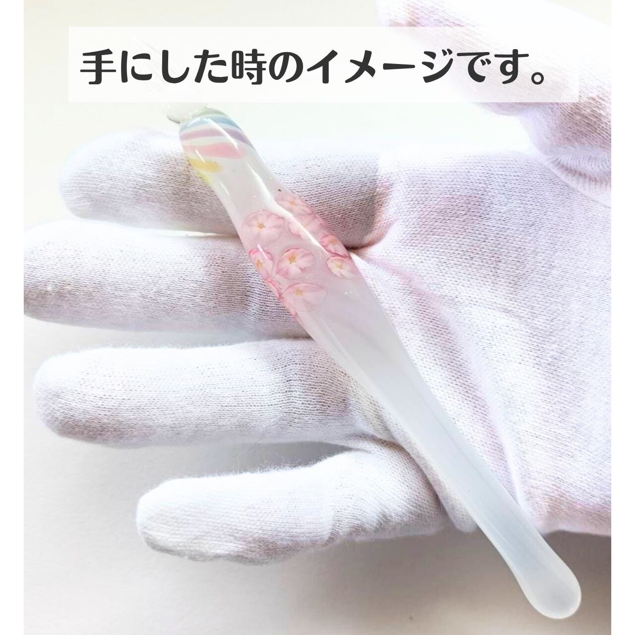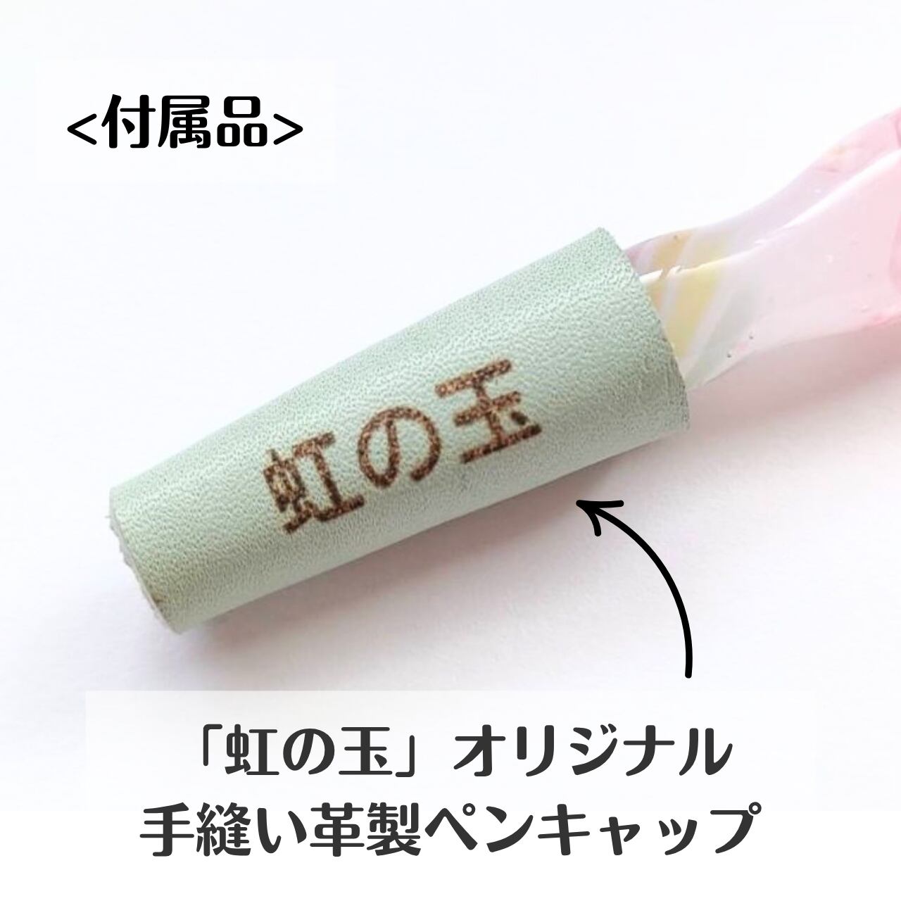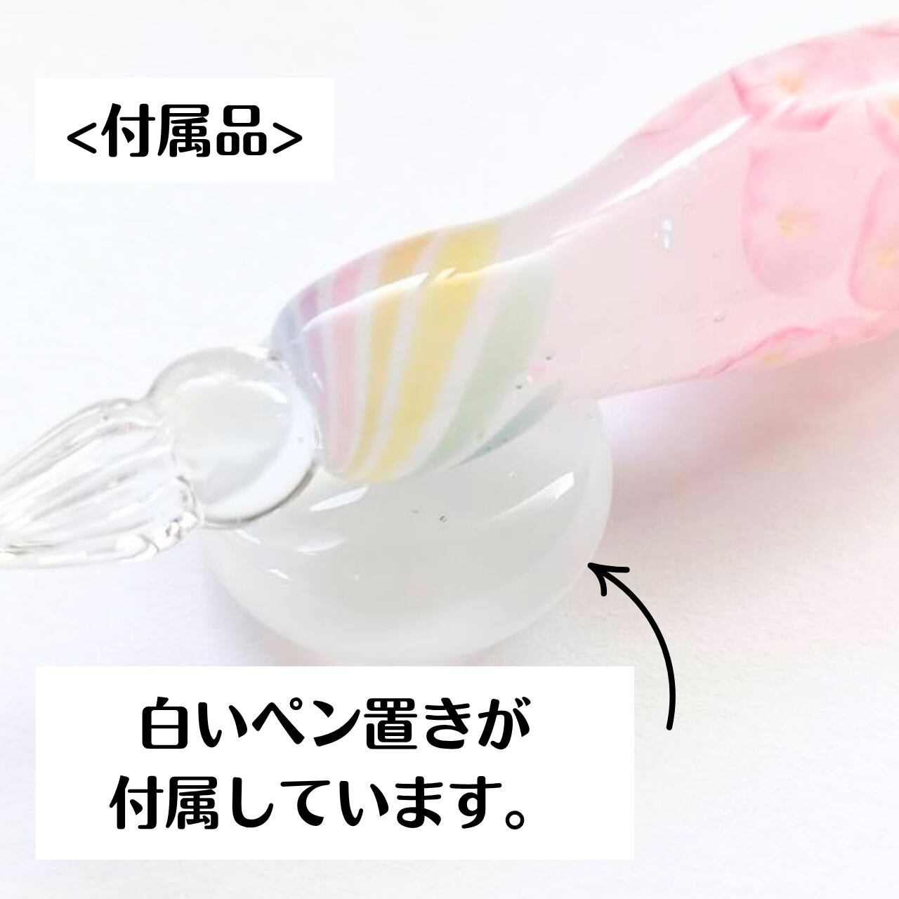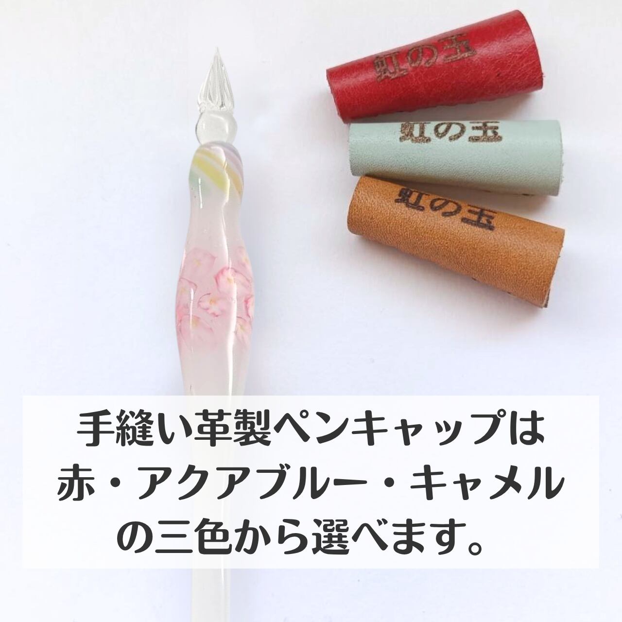 小さめの桜の花を透明のガラスの中に埋め込んで、ペン先近くに淡い「虹」も配しました。